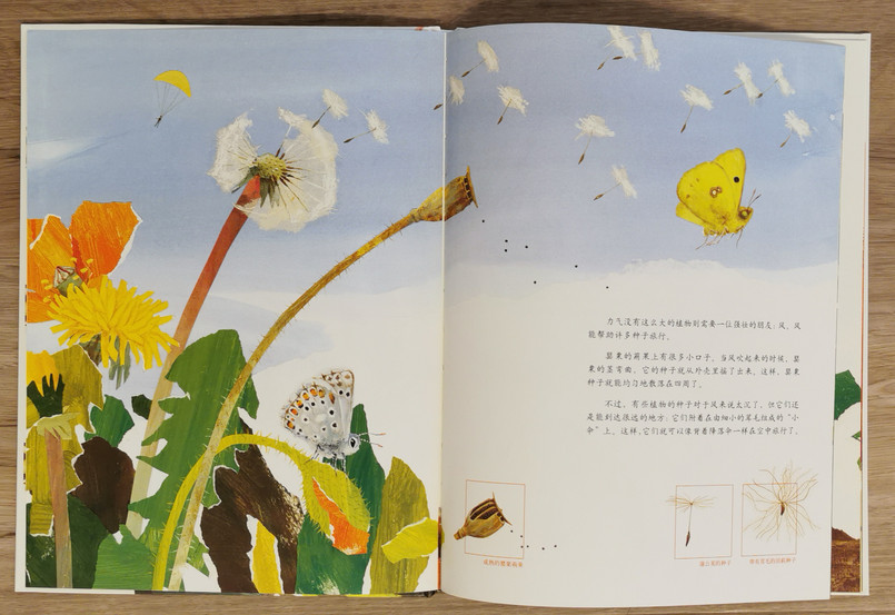 同样是讲种子的旅行,比起上面《小种子》以故事性为主的特点,《一粒种子的旅行》更侧重在科学性。插画更为真实细腻。内容上也涉及更多的知识点。